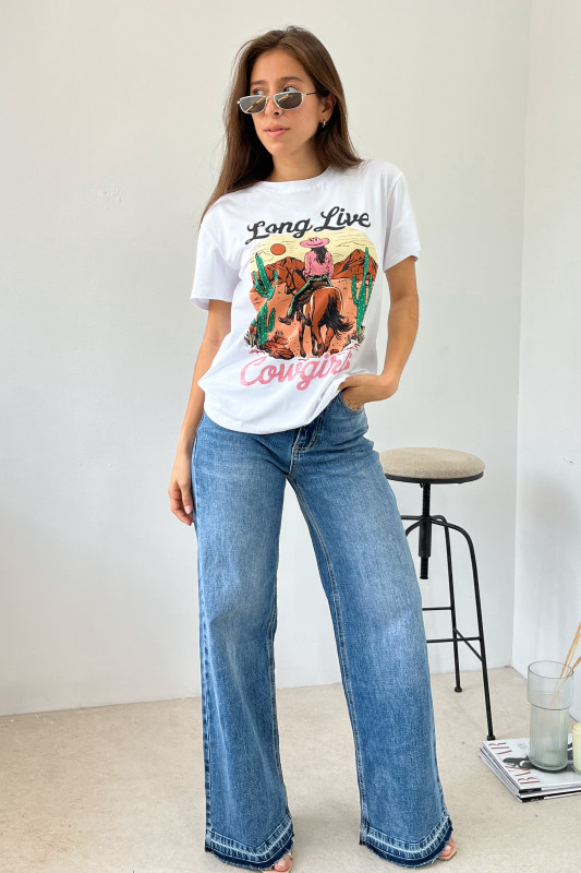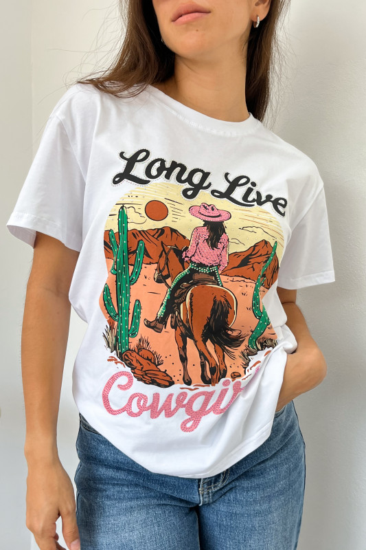 Playera corte relajado con estampadoy aplicaciones de brillantes.