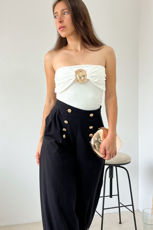 Body strapple en doble tela strech, con aplicación de medallón dorado al frente.