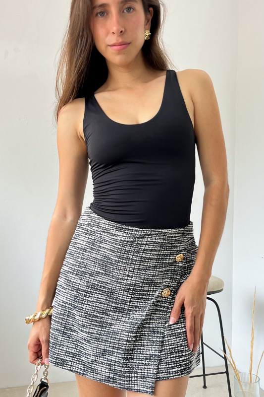 Pantiblusa en corte ajustado en doble tela, con escote pronunciado en V y tiro corto