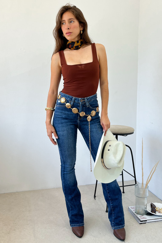 Body en mesh strech  con doble tela, tirantes anchos y escotes cuadrados.