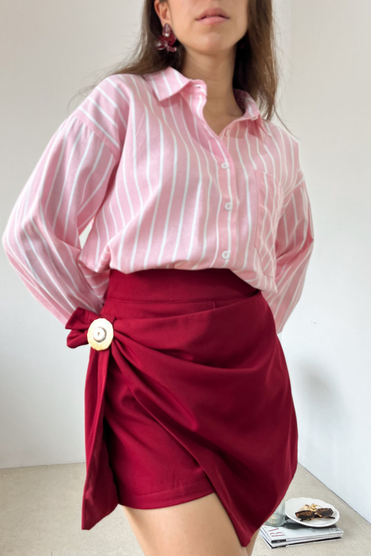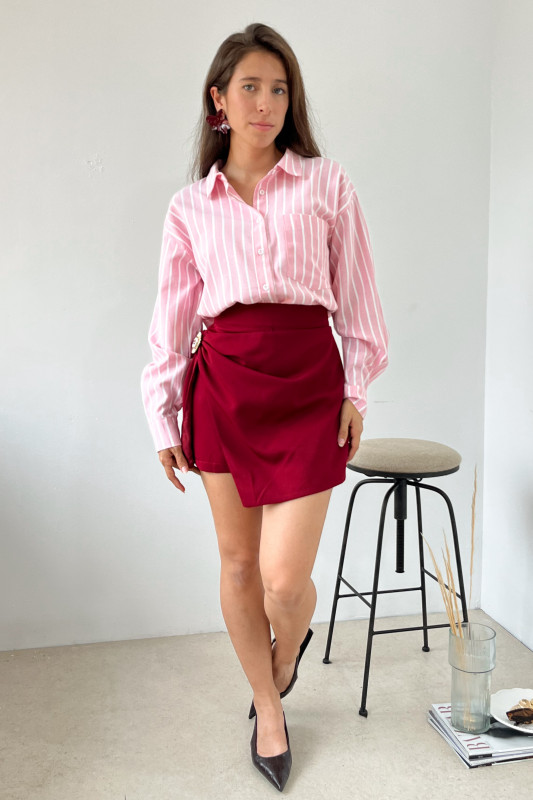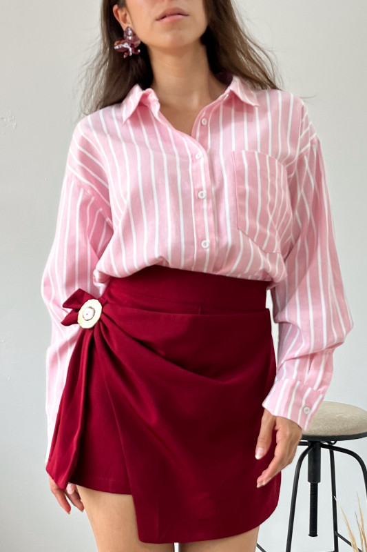 Camisera corte relajado en tela ligera en contraste líneas blancas y rosa claro.