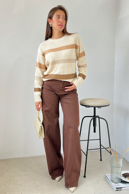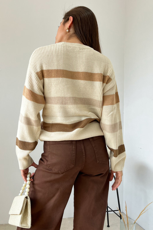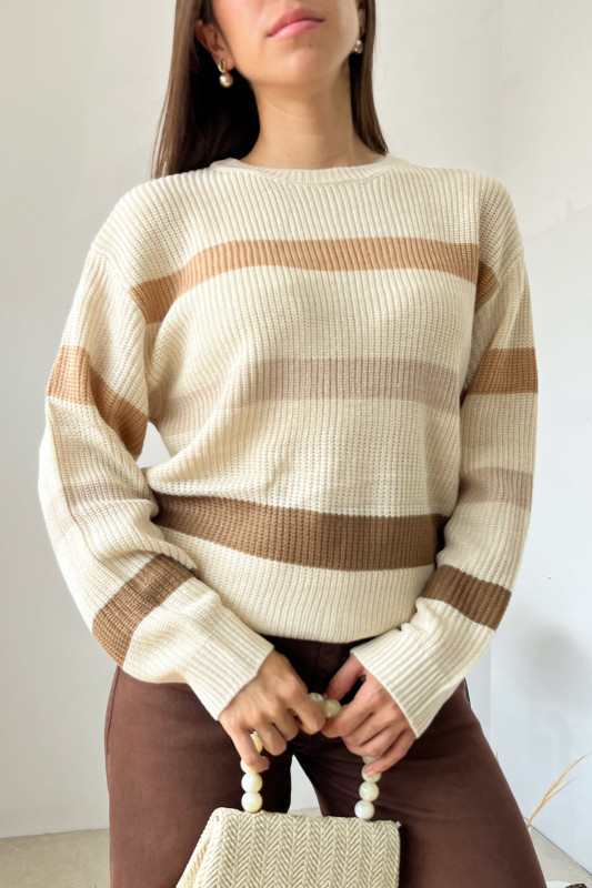 Suéter en tegido de punto con líneas en contraste de colores, mangas fluidas y largo regular