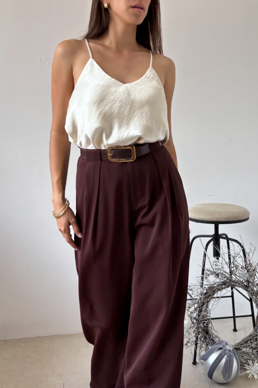 Blusa en corte lencera en satén con escote V y tirantes no ajustables.