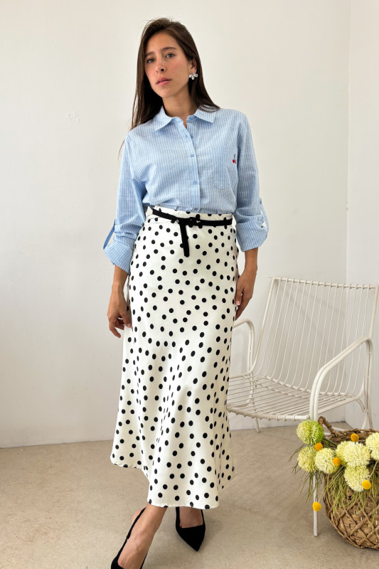 Camisera en corte regular en tejido ligero con estampado de líneas y detalle de bordado en contraste.