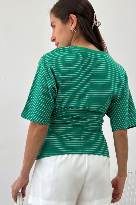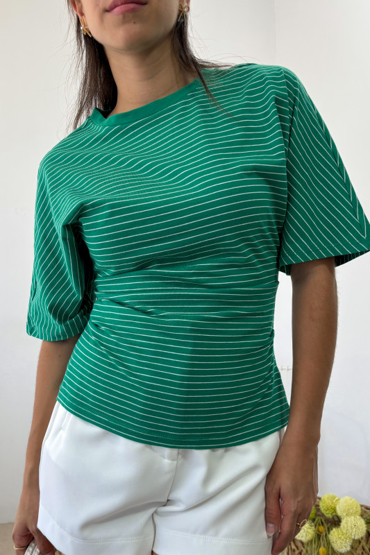 Blusa en estampado de líneas parte alta con mangas fluidas y parte baja en corte semiajustado.