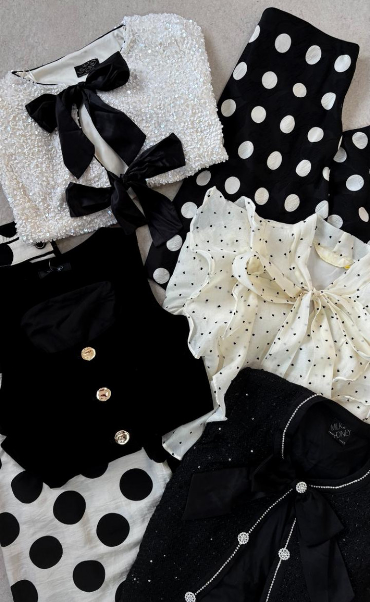Set en dos piezas en tela strech con textura acanalada y aplicaciones de brillantes, blusa corte mariposa con cuello amplio y mangas anchas; pantalón corte recto con elástico en ciuntura.